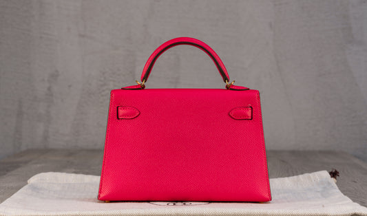 Hermès K20 Mini Kelly II 20 Sellier Bag in Rose Extreme Chevre Leather with Gold Hardware