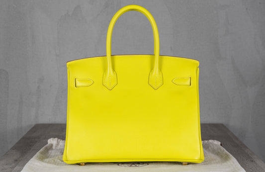 Hermès B30 Birkin 30 Retourne Bag in Lime Epsom Leather with Gold Hardware