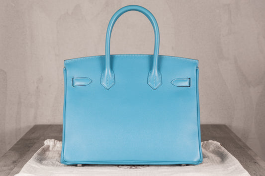 Hermès B30 Birkin 30 Retourne Bag in Blue De Nord Epsom Leather with Palladium Hardware
