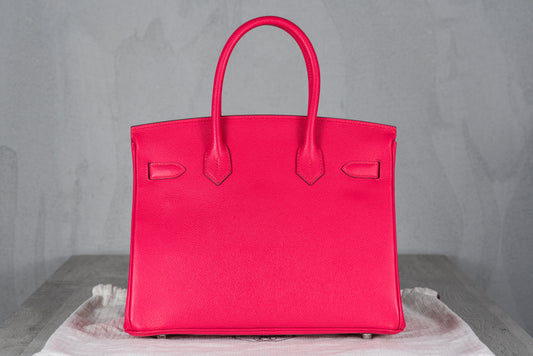 Hermès B30 Birkin 30 Retourne Bag in Rose Extreme Epsom Leather with Palladium Hardware