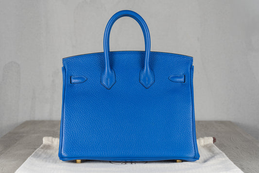 Hermès B25 Birkin 25 Retourne Bag in Blue France Togo Leather with Gold Hardware
