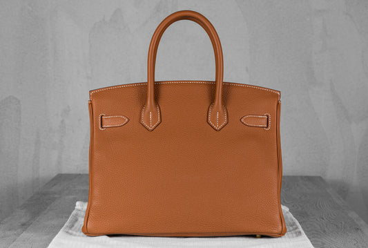 Hermès B30 Birkin 30 Retourne Bag in Gold Togo Leather with Gold Hardware