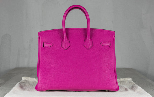 Hermès B25 Birkin 25 Retourne Bag in Rose Poupre Togo Leather with Palladium Hardware
