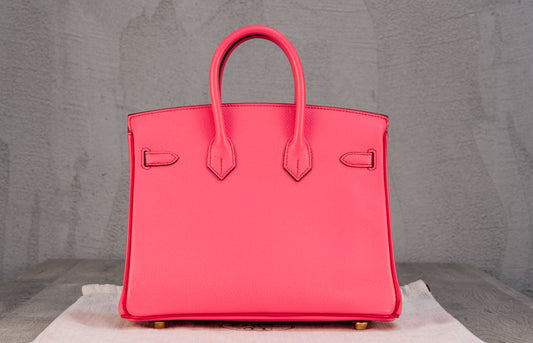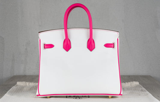 Hermès B25 Birkin 25 Retourne Bag in HSS Blanc / Rose Tyrien Epsom Leather with Gold Hardware