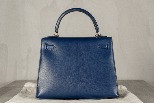 Hermès K25 Kelly II 25 Sellier Bag in Bleu Saphir Chevre Leather with Palladium Hardware