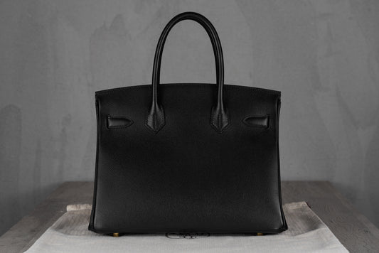 Hermès B30 Birkin 30 Retourne Bag in Noir Epsom Leather with Gold Hardware