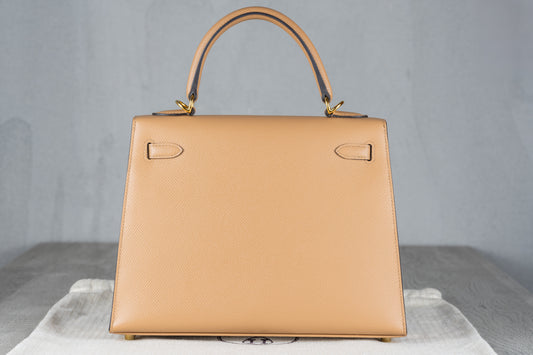 Hermès K25 Kelly II 25 Sellier Bag in Chai Epsom Leather with Gold Hardware