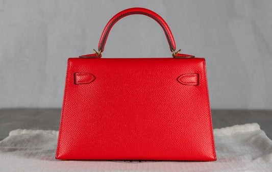 Hermès K20 Mini Kelly II 20 Sellier Bag in Rouge De Coeur Epsom Leather with Gold Hardware