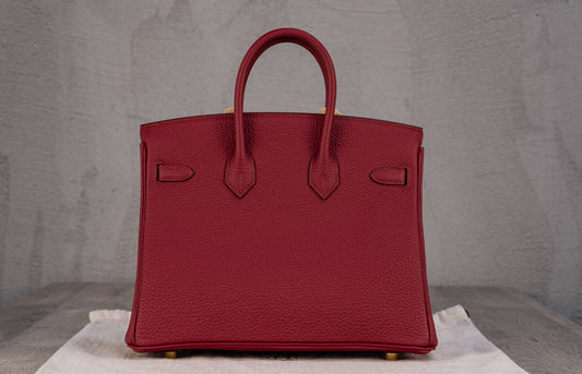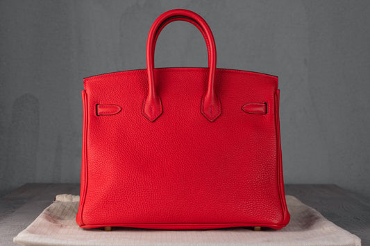 Hermès B25 Birkin 25 Retourne Bag in Rouge Tomate Togo Leather with Gold Hardware