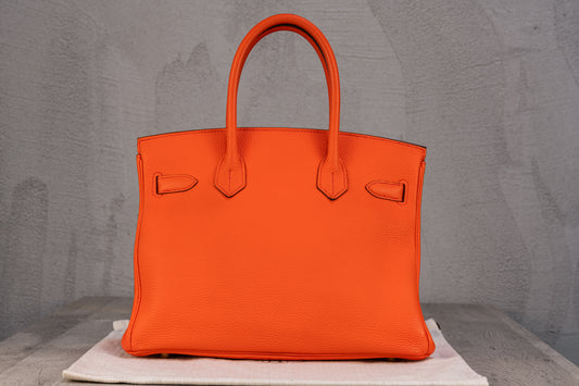 Hermès B30 Birkin 30 Retourne Bag in Orange Togo Leather with Gold Hardware