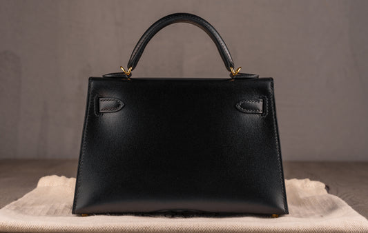 Hermès K20 Mini Kelly II 20 Sellier Bag in Noir Box Leather with Gold Hardware
