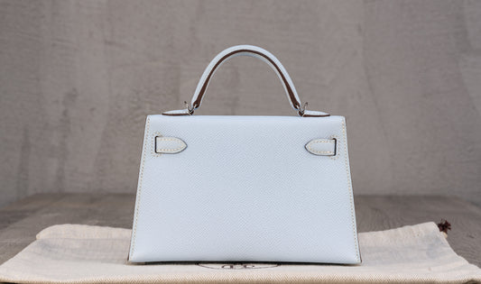 Hermès K20 Mini Kelly II 20 Sellier Bag in Blue Brume Epsom Leather with Palladium Hardware