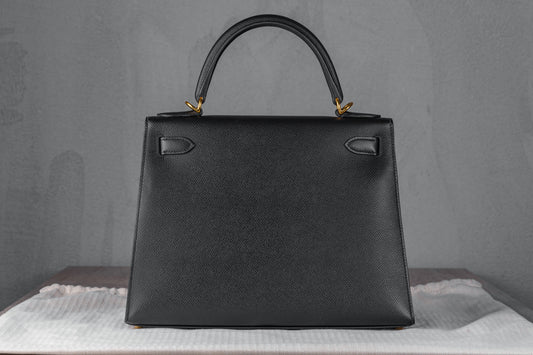 Hermès K28 Kelly II 28 Sellier Bag in Noir Epsom Leather with Gold Hardware