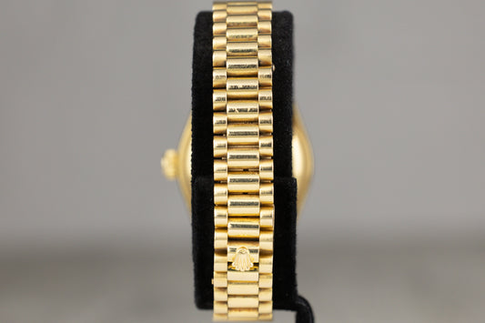 Rolex 69178 Datejust 26 Yellow Gold Presidential Bracelet Diamond Bezel Black Diamond Dial