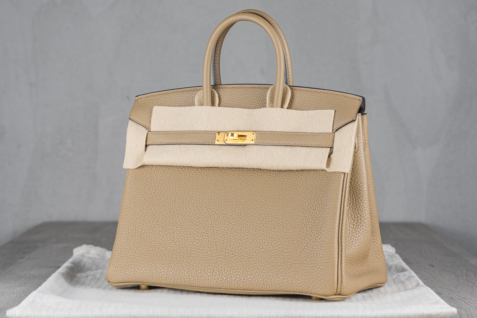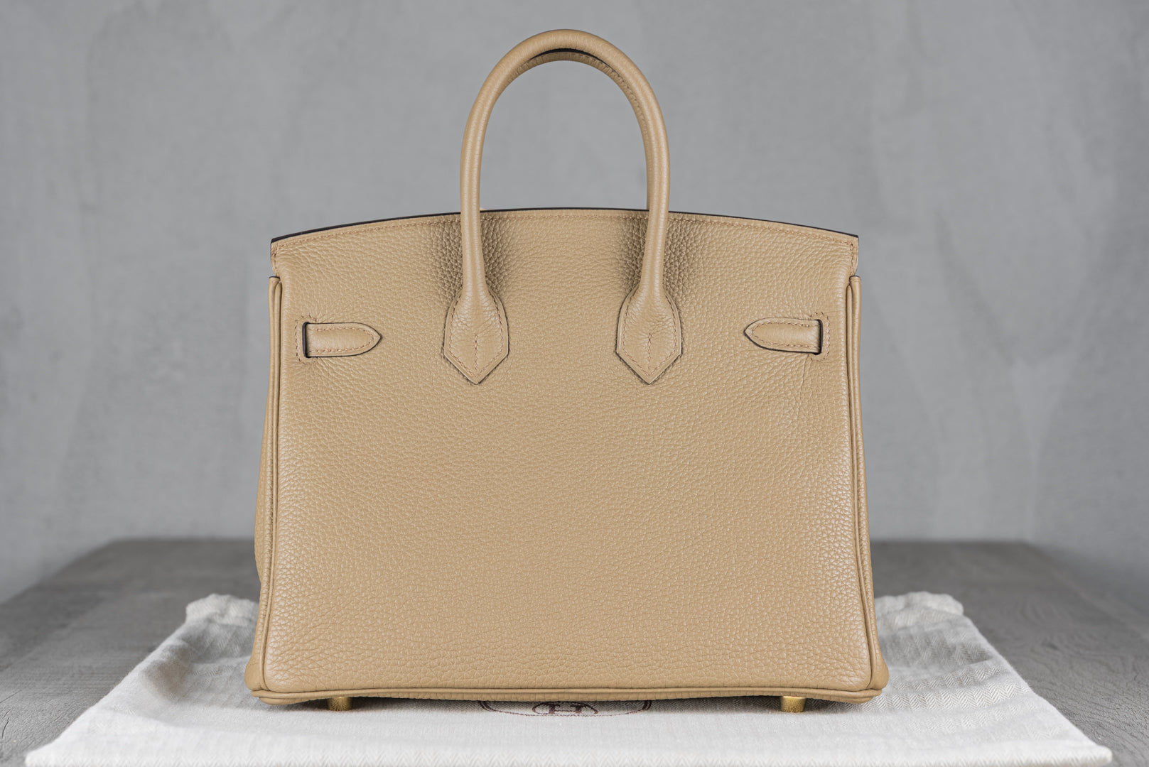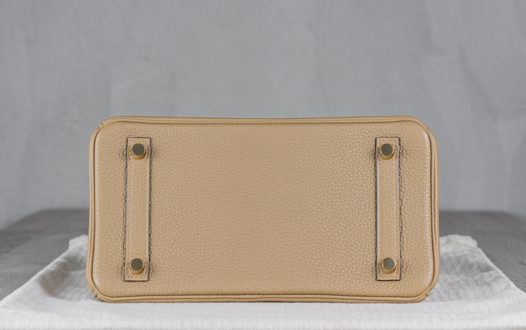 Hermès B25 Birkin 25 Retourne Bag in Beige Marfa Togo Leather with Gold Hardware