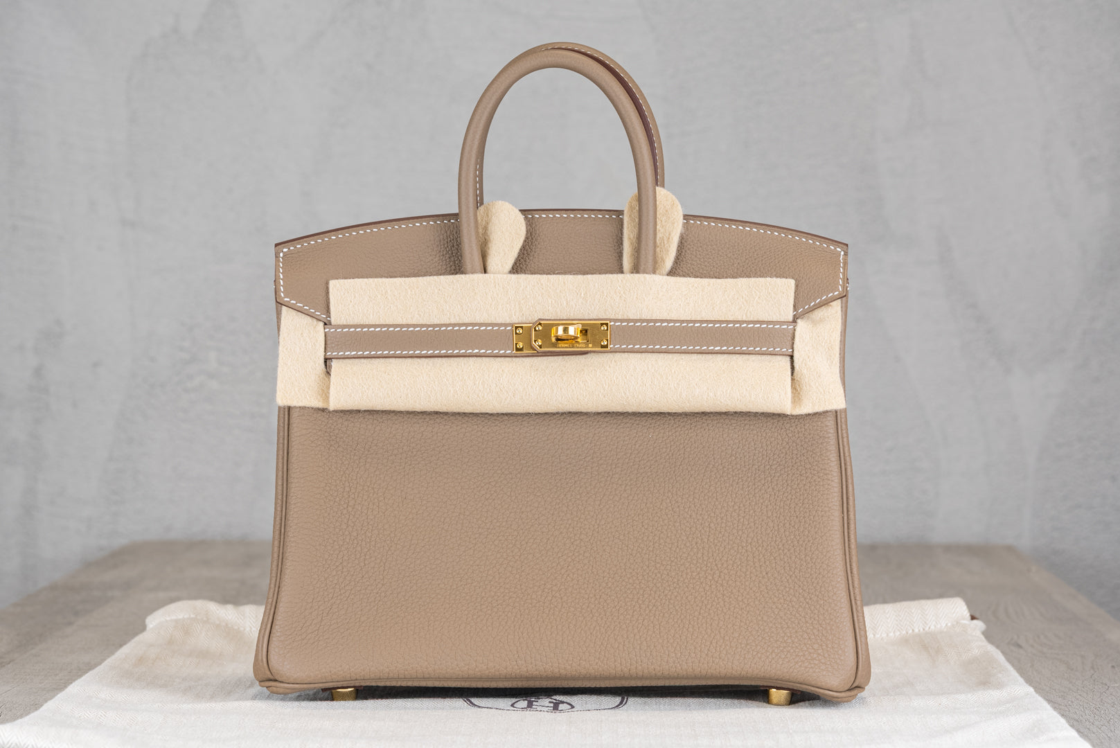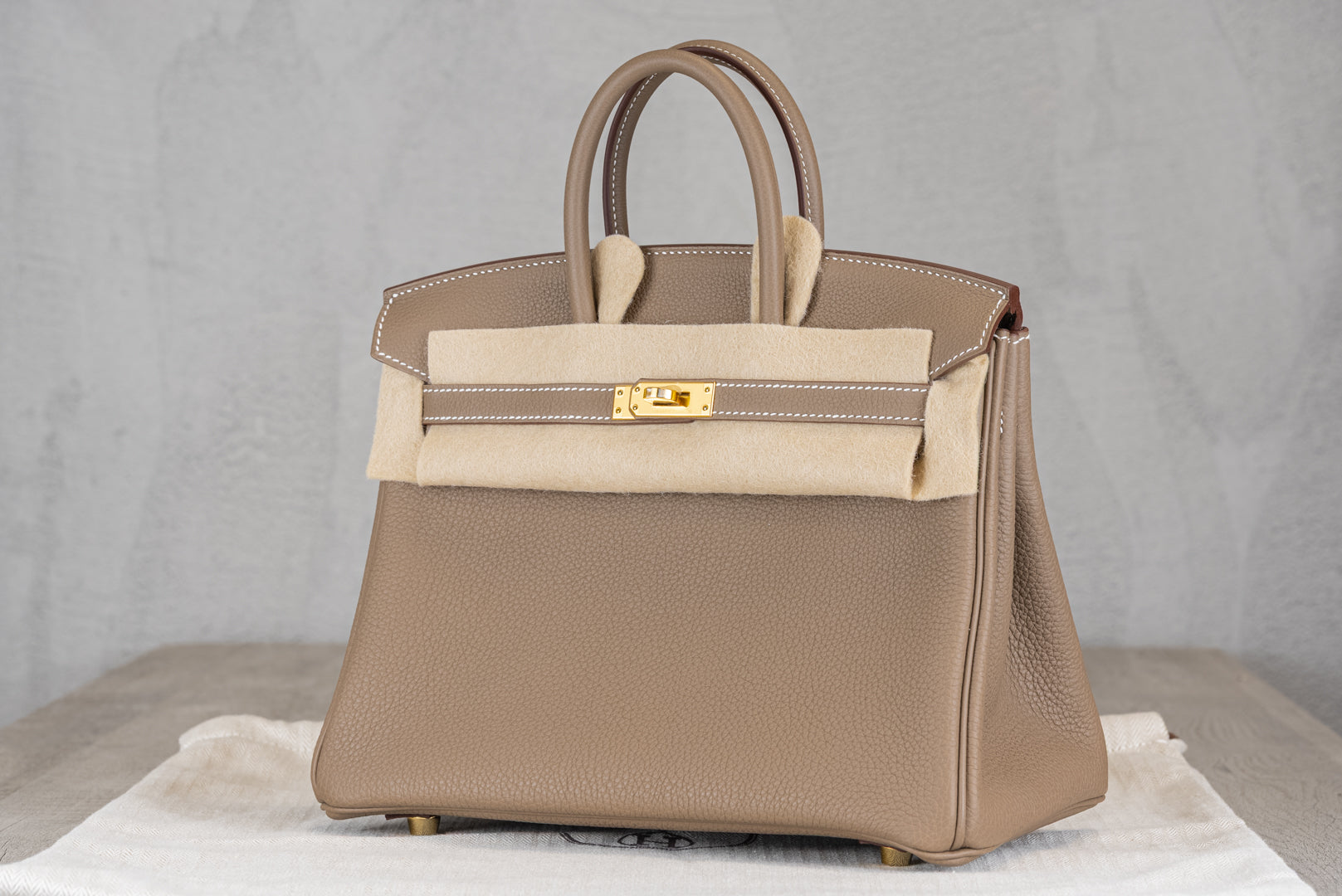 Hermès B25 Birkin 25 Retourne Bag in Etoupe Togo Leather w/ Gold Hardware