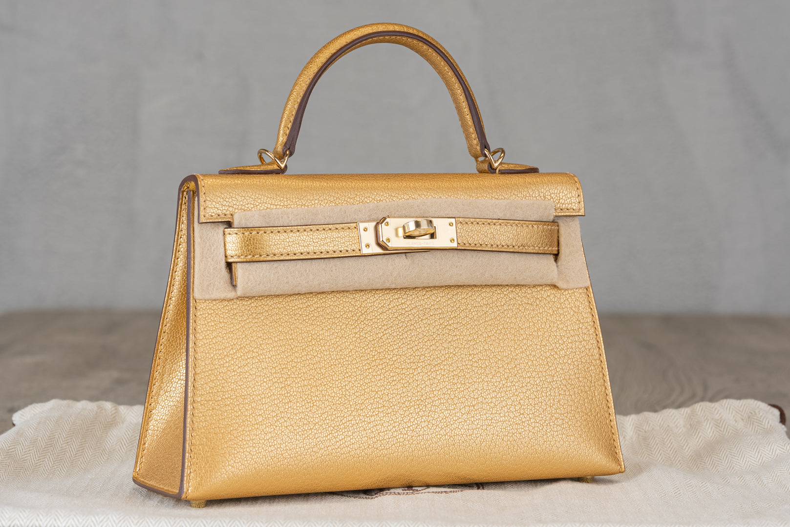 Hermès K20 Mini Kelly II 20 Sellier Bag in Dore Chevre Chamkila Leather with Gold Hardware